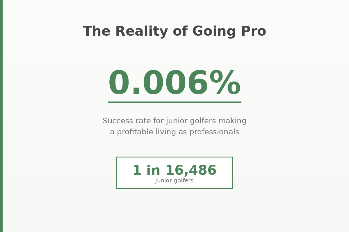 Turning "Pro" at 16 is a business registration, not a career. The global probability of a junior golfer making a profitable living as a pro is 0.006%—roughly 1 in 16,486.